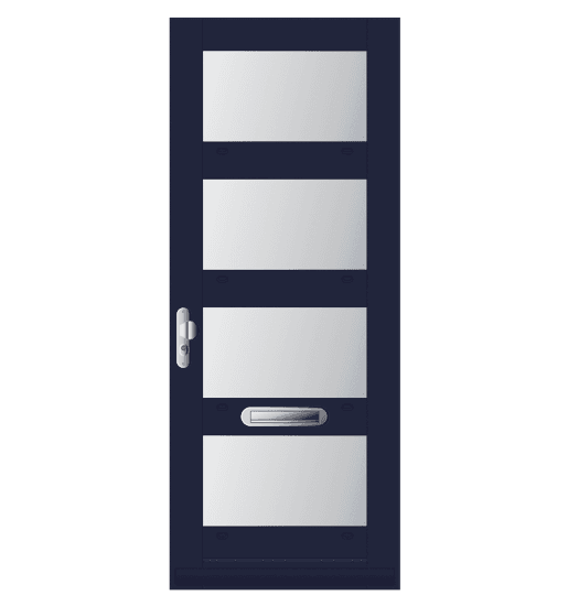 Voordeur. Massief hardhout in FSC® of NON-FSC®. Leveringen onder KOMO keurmerk, PKVW keurmerk en 6 jaar garantie. De deuren kunnen optioneel voorzien worden van een weldorpel. Afwerking: voor- of aflak in een RAL kleur.