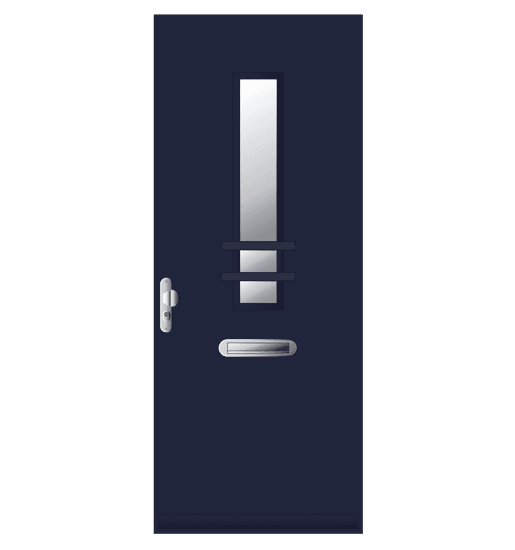 Voordeur. Samengesteld. Randhout met 2-zijdig beplating en XPS vulling in FSC® of NON-FSC®. Leveringen onder KOMO keurmerk, PKVW keurmerk en 6 jaar garantie. Afwerking: voor- of aflak in een RAL kleur.