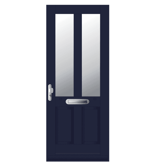 Voordeur. Massief hardhout met 1-zijdig bossingpanelen in FSC® of NON-FSC®. Leveringen onder KOMO keurmerk, PKVW keurmerk en 6 jaar garantie. De deuren kunnen optioneel voorzien worden van een 2-zijdig bossingpanelen en een weldorpel. Afwerking: voor- of aflak in een RAL kleur.