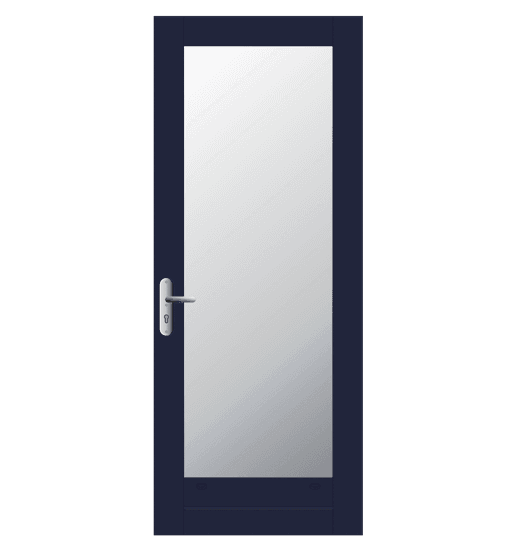 Achterdeur. Massief hardhout in FSC® of NON-FSC®. Leveringen onder KOMO keurmerk, PKVW keurmerk en 6 jaar garantie. Afwerking: voor- of aflak in een RAL kleur.