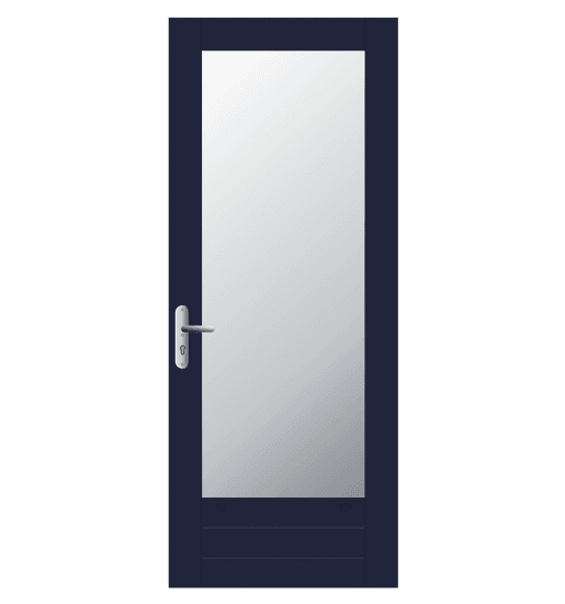 Achterdeur. Massief hardhout in FSC® of NON-FSC®. Leveringen onder KOMO keurmerk, PKVW keurmerk en 6 jaar garantie. Afwerking: voor- of aflak in een RAL kleur.