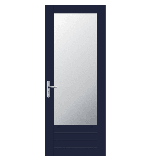 Achterdeur. Massief hardhout in FSC® of NON-FSC®. Leveringen onder KOMO keurmerk, PKVW keurmerk en 6 jaar garantie. Afwerking: voor- of aflak in een RAL kleur.