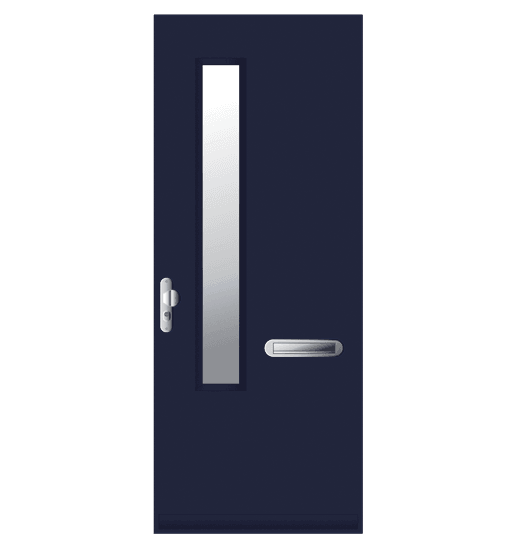 Voordeur. Samengesteld. Randhout met 2-zijdig beplating en XPS vulling in FSC® of NON-FSC®. Leveringen onder KOMO keurmerk, PKVW keurmerk en 6 jaar garantie. Afwerking: voor- of aflak in een RAL kleur.