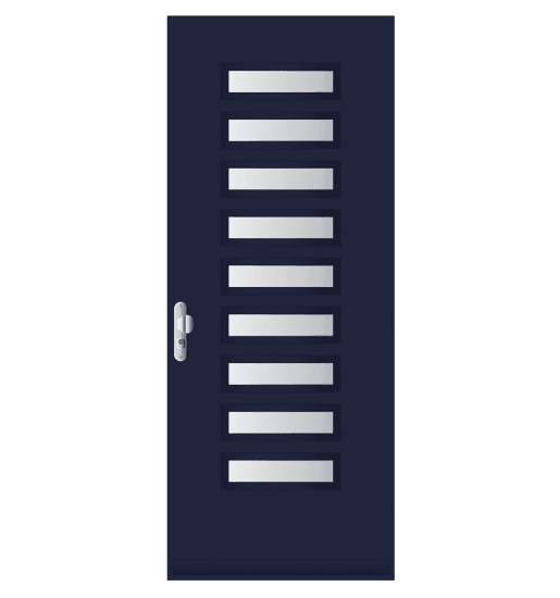 Voordeur. Samengesteld. Randhout met 2-zijdig beplating en XPS vulling in FSC® of NON-FSC®. Leveringen onder KOMO keurmerk, PKVW keurmerk en 6 jaar garantie. Afwerking: voor- of aflak in een RAL kleur.
